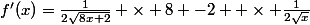 =\frac{1}{2\sqrt{8x+2}} \times 8 -2 \times \frac{1}{2\sqrt{x}})