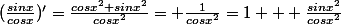 '=\frac{cosx^2+sinx^2}{cosx^2}= \frac{1}{cosx^2}=1 + \frac{sinx^2}{cosx^2})