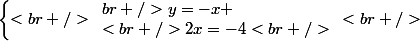 j'ai une droite passant par le point 0 , et une autre passe par y=-4 , elles se croisent en -1.5 .