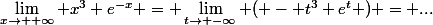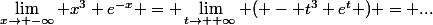 Du coup j'ai une autre petite question... je dois trouver les limites de g(x) donc de x^3e^(-x), évidement sous cette forme c'est impossible de le faire car lim ( x tend vers - l'infini ) X^3 = O et lim ( x tend vers - l'infini ) e^-x = + l'infini donc forme indéterminée ( pareil avec x tend vers + l'infini ), je dois donc modifier la forme de g(x) pour avoir une formule de référence de e^x mais je ne vois pas du tout comment la trouver sur cette fonction... peut être x(x^2*(e^-x)/x) ? :hein: