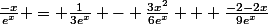 C'est de la forme f(x)=U*V donc sa dérivée sera de la forme f'(x)=U'V + UV' avec U=1/6*x² + 1/9*x et V=e^(-x) donc U'= 1/3*x + 1/9 et V' = -e^(-x)