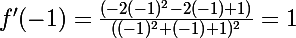 }=\frac{(-2(-1)^2-2(-1)+1)}{((-1)^2+(-1)+1)^2}=1)