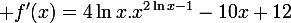 =4\ln{x}.x^{2\ln{x}-1}-10x+12)