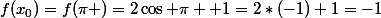 =f(\pi )=2\cos \pi +1=2*(-1)+1=-1)