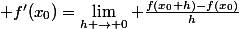 =\lim_{h \rightarrow 0} \ \frac{f(x_0+h)-f(x_0)}{h})
