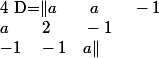 \begin{vmatrix}a&-1\\<br />2&-1<br />\end{vmatrix}\\<br />&=(a^2-1)(-a+2)<br />\end{align}.)