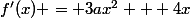Je parle de : " f'(x) = 3ax^2 + 4x "