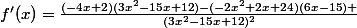 on m'a demandé de trouver la dérivé de f(x)=(-2x^2+2x+24)/(3x^2-15x+12)