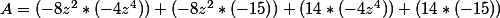 Développer et gérer les puissances : (-8z^2+14)(-4z^4-15)