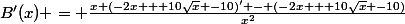 Je bloque totalement pour dérivé cette fonction : B(x)= [-2x+10(racine carré de x) -10 ] / x