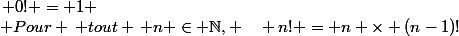 En fait, pour faire simple : n! = n(n-1)(n-2)...*2*1