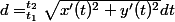 C'est la longueur de la courbe paramétrée xt,yt entre t1 et t2,