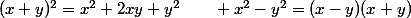 ^2=x^2+2xy+y^2\qquad x^2-y^2=(x-y)(x+y))