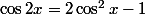 élise78 a écrit:euh... 2cos²(x)=cos(2x)+1 c'est une ppté ?