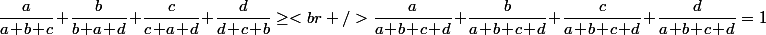 ôter "c" au dénominateur du 1er terme et "d" au dénominateur du second conduit à une somme des 2 termes = 1. Or ôter une valeur "+" au dénominateur accroit la fraction.