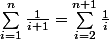 sum de i allant de 1 à n de 1/(1+i) = somme de i allant de ... à ... de 1/i