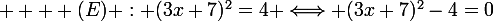 : (3x+7)^2=4 \Longleftrightarrow (3x+7)^2-4=0)