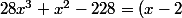 mais je ne comprend pas comment on pourrait trouver ce 2 ! et même si je prouve que 28x^3+x²-228=(x-2)(28x²+57x+114)=0 cela signifie qu'il y aurait 2 solutions ?? :marteau: :marteau: