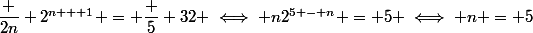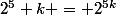 Qui permet de constater que k = 1 convient (cela fait 2^0 et 1). Maintenant si k = 0 cela ne convient pas clairement. Il est clair aussi que si k >= 2, alors k < 2^(5(k - 1)) (par exemple par récurrence). Ou bien plus rapidement comme le fait Zygomatique, au choix.