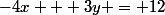 -4x - 3y + 12 = 0 puis 4x + 3y = 12