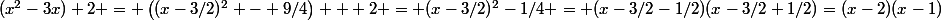 +2 = \left((x-3/2)^2 - 9/4\right) + 2 = (x-3/2)^2-1/4 = (x-3/2-1/2)(x-3/2+1/2)=(x-2)(x-1))
