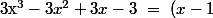 Bonjour,il faudrait que je trouve une reponse à cette question:les points d'intersections avec l'axe des abscisses pour f(x)=(x^3-3x²+3x-3)/(x-2)²
