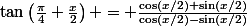 tan(pi/4+x/2)=(tan(pi/4)+tan(x/2))/(1-tan(x/2)tan(pi/4))