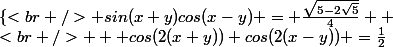 Plus sérieusement, y aurait-il sur internet un recueil de formules trigonométriques ? Car j'avoue qu'il y en a deux ou trois que je ne connais pas...