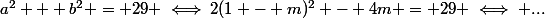 Déterminer les valeurs du nombre réel m pour que P ait 2 racine a et b telles que . a² + b² = 29