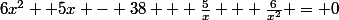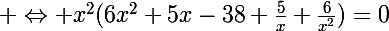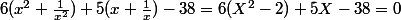 +5(x+\frac{1}{x})-38=6(X^2-2)+5X-38=0)