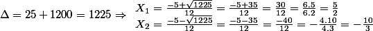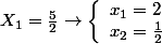 on revient a petit x en donnant les valeurs de X_{1,2}