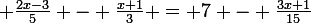 2x-3/5 - x+1/3 = 7- 3x+1/15
