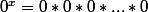 En réalité est une forme indéterminée et n'a donc pas vraiment de valeur (d'ailleurs des démonstrations bien savantes mais impliquant souvent des divisions par zéro ou des passages à la limite pour des fonctions non continues "montrent" que ou ). Mais aujourd'hui on a adopté une convention disant que .