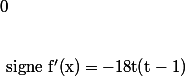 }&&&&-&&&0\\\\\\{\rm~signe~f'(x)=-18t(t-1)}&0&&&+&&&0\\\end{tabular})