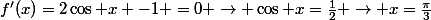 =2\cos x -1 =0 \rightarrow \cos x=\frac{1}{2} \rightarrow x=\frac{\pi}{3})