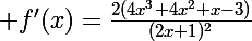 Pour trouver l'équation de la deuxième tangente, tu procèdes comme pour la première, tu connais déjà le coefficient directeur 2 et l'abscisse du point de tangence il te reste à calculer l'ordonnée et à terminer l'équation.