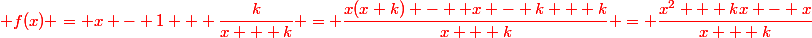 = x - 1 + \dfrac{k}{x + k} = \dfrac{x(x+k) - x - k + k}{x + k} = \dfrac{x^2 + kx - x}{x + k})