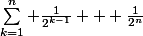 k est ton indice de sommation : il représente de quel entier à quel entier tu fais ta somme. De plus, il fait partie de l'expression 1 / 2^(k-1).