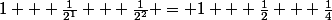 1+ 1/2 + 1/3 + ... + 1/2^n + 1/((2^n)+1) + 1/((2^n)+2) + ... + 1/(2^n+1) ;) 1 + (n+1)/2
