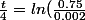 \Longleftrightarrow t=4ln ( \frac{0.75}{0.002}))