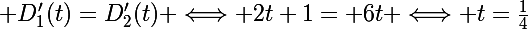 donc enfaite je dois calculer la dérivée de d1 puis de d2 et faire d1'=d2'?
