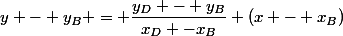 Ensuite pose l'équation de la droite y = ax+b, avec le "a" trouvé au-dessus, et cherche "b" pour que B (ou D peu importe) vérifie l'équation.