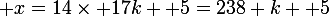 14 divise 3(x -5) et 14 est premier avec 3 donc 14 divise x-5.