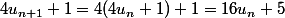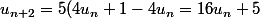 U(n+1) = 4Un + 1 soit 5U(n+1) = 20 Un + 5 soit U(n+2) = 16Un + 5