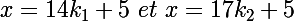les solutions du système sont les entiers de la forme : 238 k +5 avec k élément de