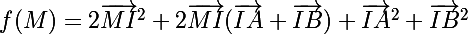 Pour la 2) j'ai fait f(M), j'ai développer (MI+IA)^2+(MI+IB)^2, mais je trouve bien 2MI^2 mais un moment j'ai trouvé MI^2+2vectxMIxIA+IA^2+MI^2+2vectxMIxIB+IB^2, je sais pas quoi faire du reste ( les choses en gras j'ai éliminé)