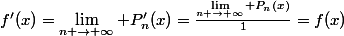 =\lim_{n \rightarrow \infty} P'_n(x)=\frac{\lim_{n \rightarrow \infty} P_n(x)}{1}=f(x))
