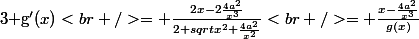 <br />= \frac{2x-2\frac{4a^2}{x^3}}{2 sqrt{x^2+\frac{4a^2}{x^2}}}<br />= \frac{x-\frac{4a^2}{x^3}}{g(x)})