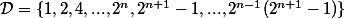 2^0 , 2^1 , 2^2 , ... 2^n , 2^{n+1} - 1 , 2(2^{n+1} - 1) , 2^2(2^{n+1} - 1) , ... , 2^n(2^{n+1} - 1)