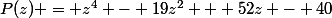 Puis tu dis que c'est égal à z^4 - 19z^2 + 52 - 40